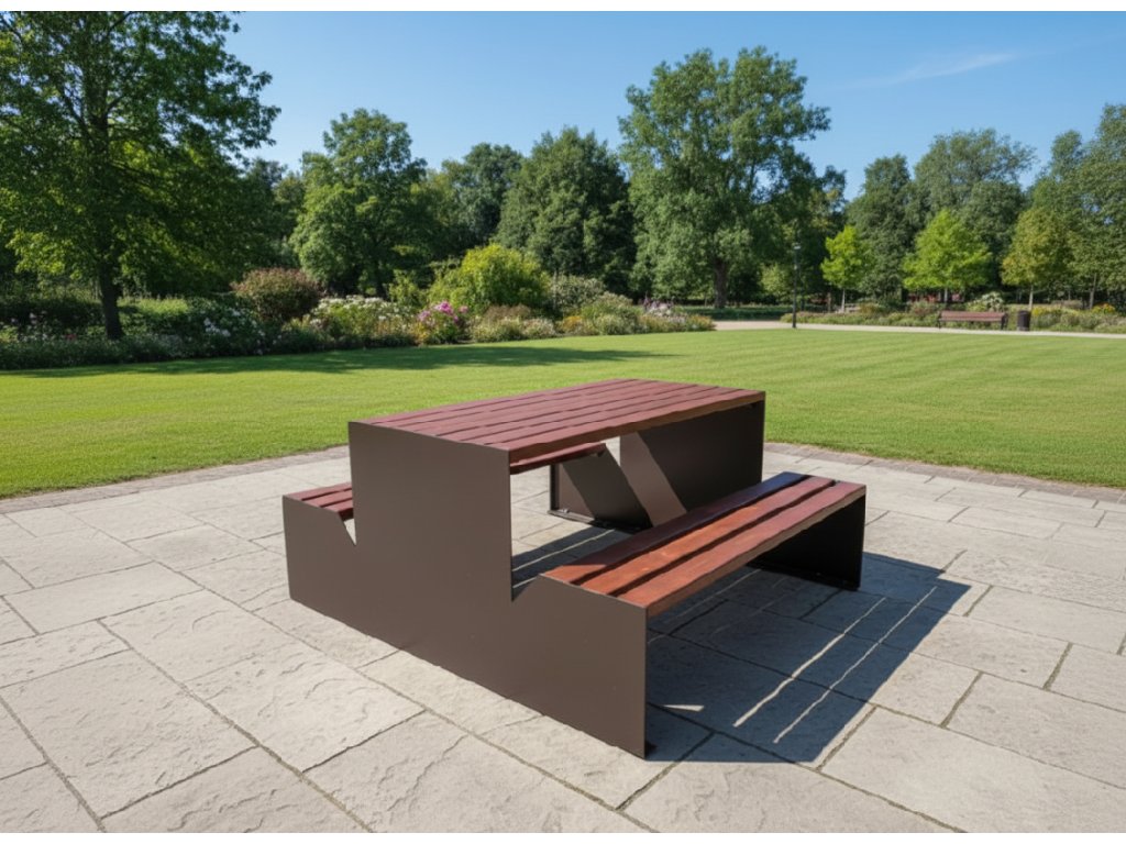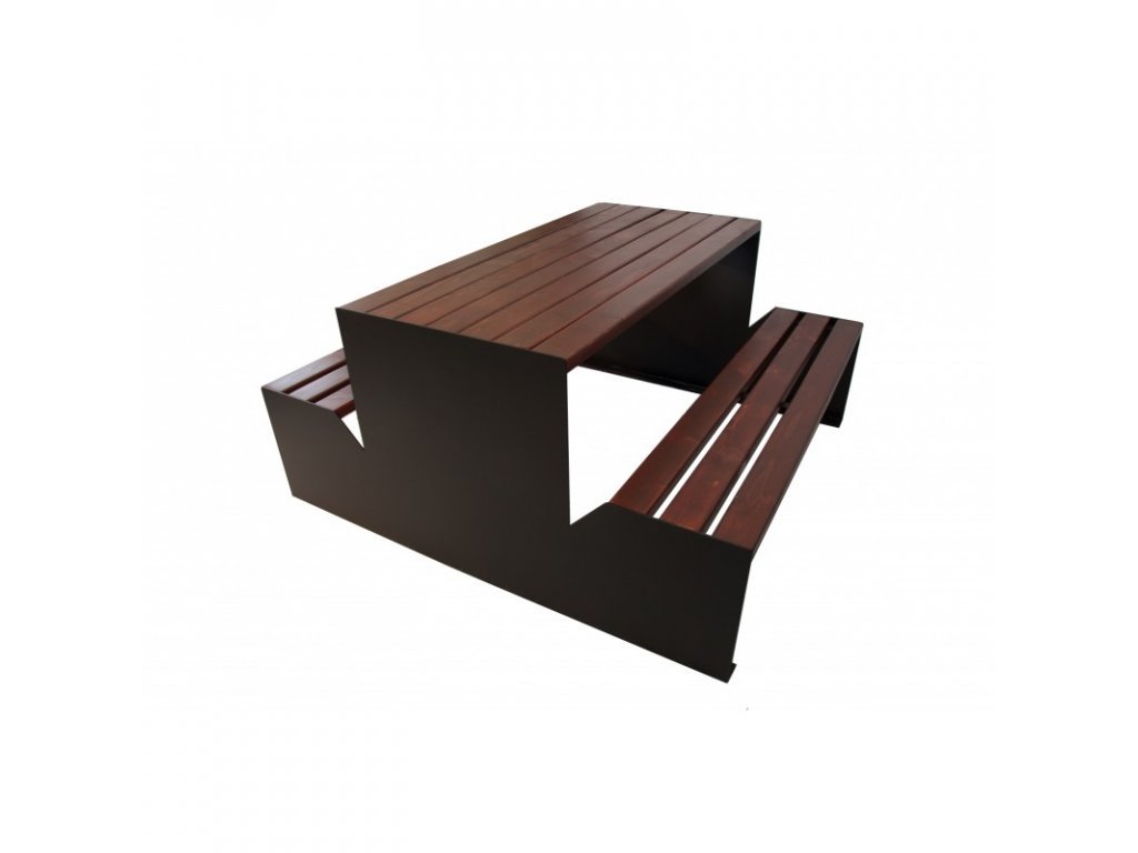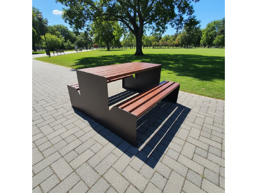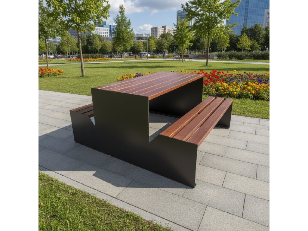 Designový model setu lavice se stolem ideální do městských parků a veřejných prostor.