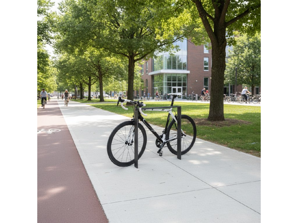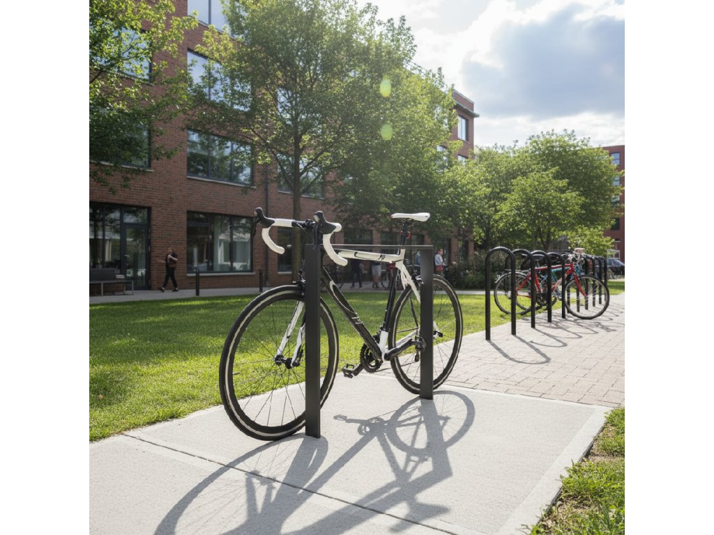 Stojan na kola Uni 2 - základní systém pro parkování jízdních kol, který splňuje požadavek pro bezpečné uzamčení kola.