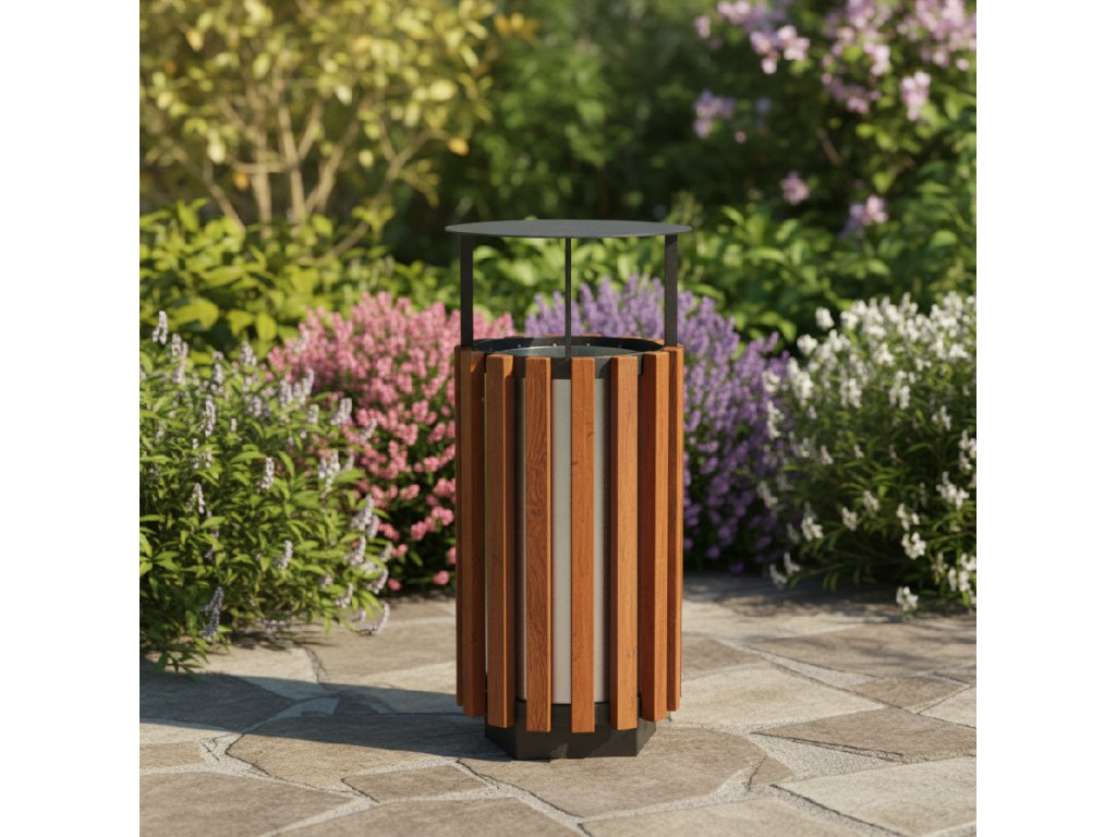 Nosná ocelová kostra nese opláštění z masivního dřeva a vložená nádoba z pozinkovaného plechu. Varianty se stříškou mohou být vybaveny zhášečem cigaret s popelníkem. Kotvení koše šrouby nebo betonováním.