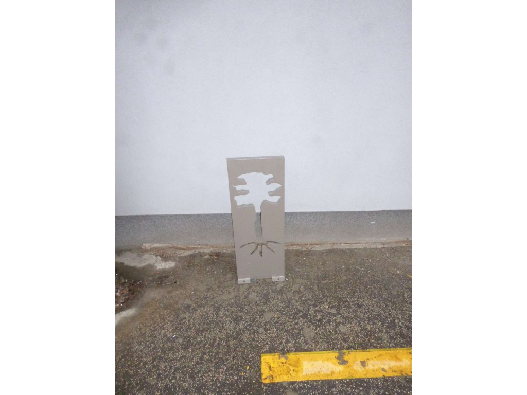 Výpalek umožňuje precizní tvarování motivu stromu, čímž vzniká designově jedinečný prvek městského mobiliáře.