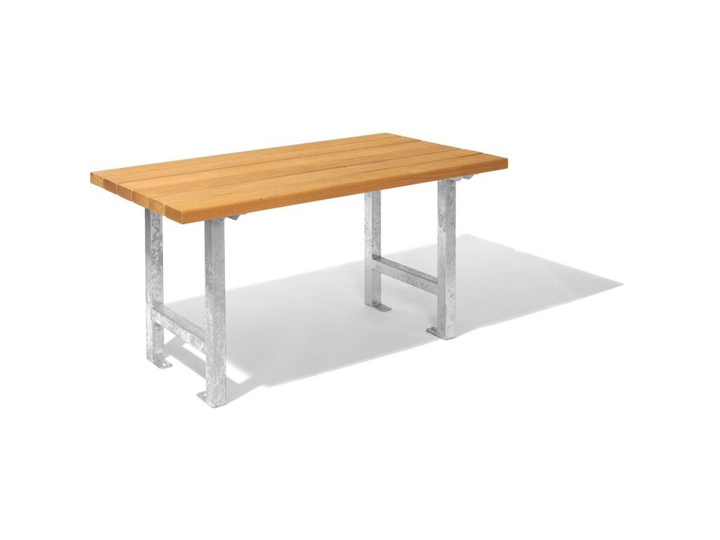 Stůl Merida je připraven pro upevnění k zemi pomocí šroubů nebo můžete volit variantu stolu k zabetonování. Všechny kovové části stolu Merida jsou pokryty práškovou vypalovnou barvou nebo žárově pozinkovány. Dřevěné části stolu je možné nahradit bezúdržbovými prkny z recyklovaného plastu.