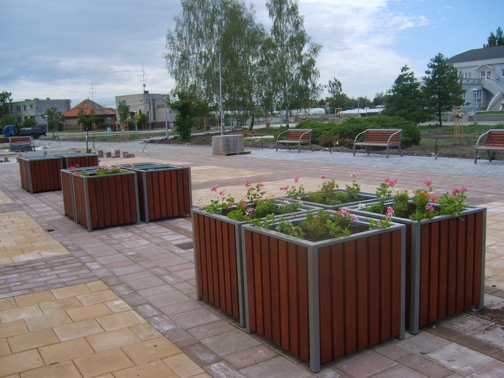Čtyřhranný venkovní květináč s ocelovým rámem, dřevěnou výplní a vnitřní pozinkovanou vložkou představuje prémiový prvek městského mobiliáře, který kombinuje moderní architekturu, vysokou stabilitu, snadnou údržbu a dlouhou životnost.